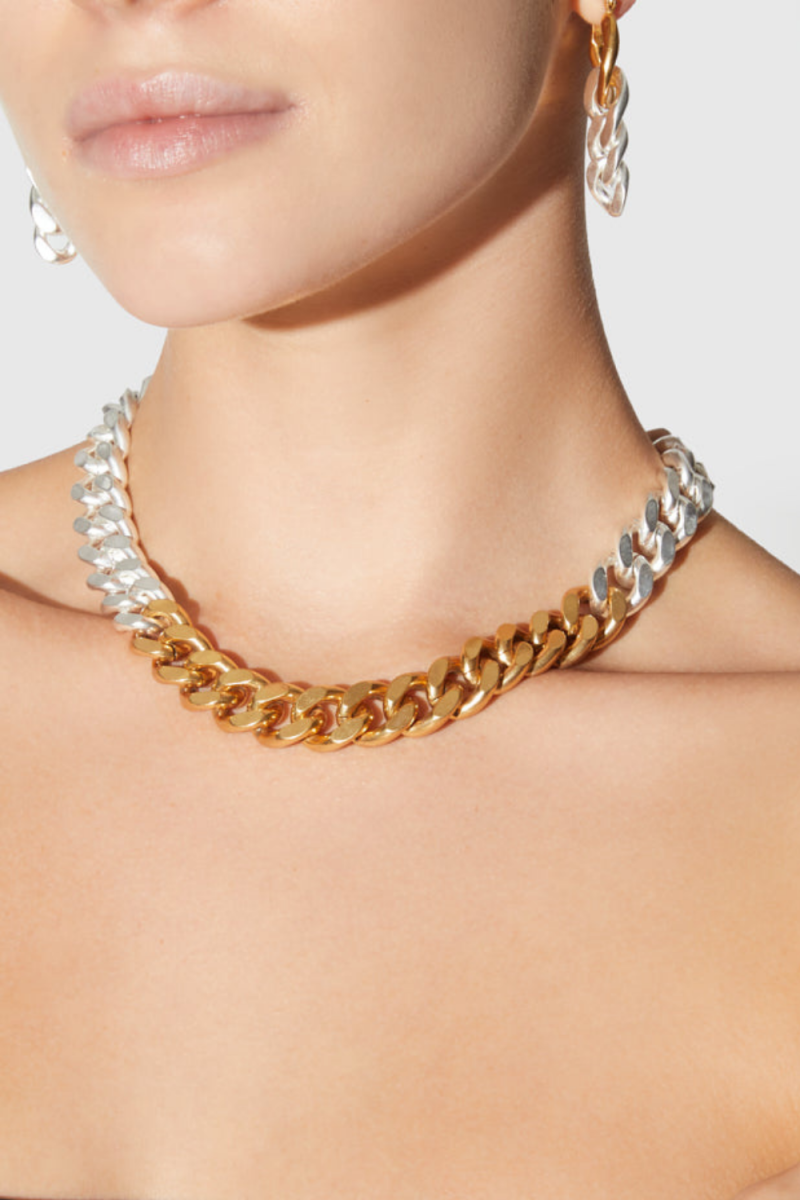An accessory with outfit-making superpowers. This chain necklace is made of silver and gold links for a cool, two-tone look. Incredibly versatile, this beauty will pair perfectly with just about any ensemble. Style #: HO21NE0002