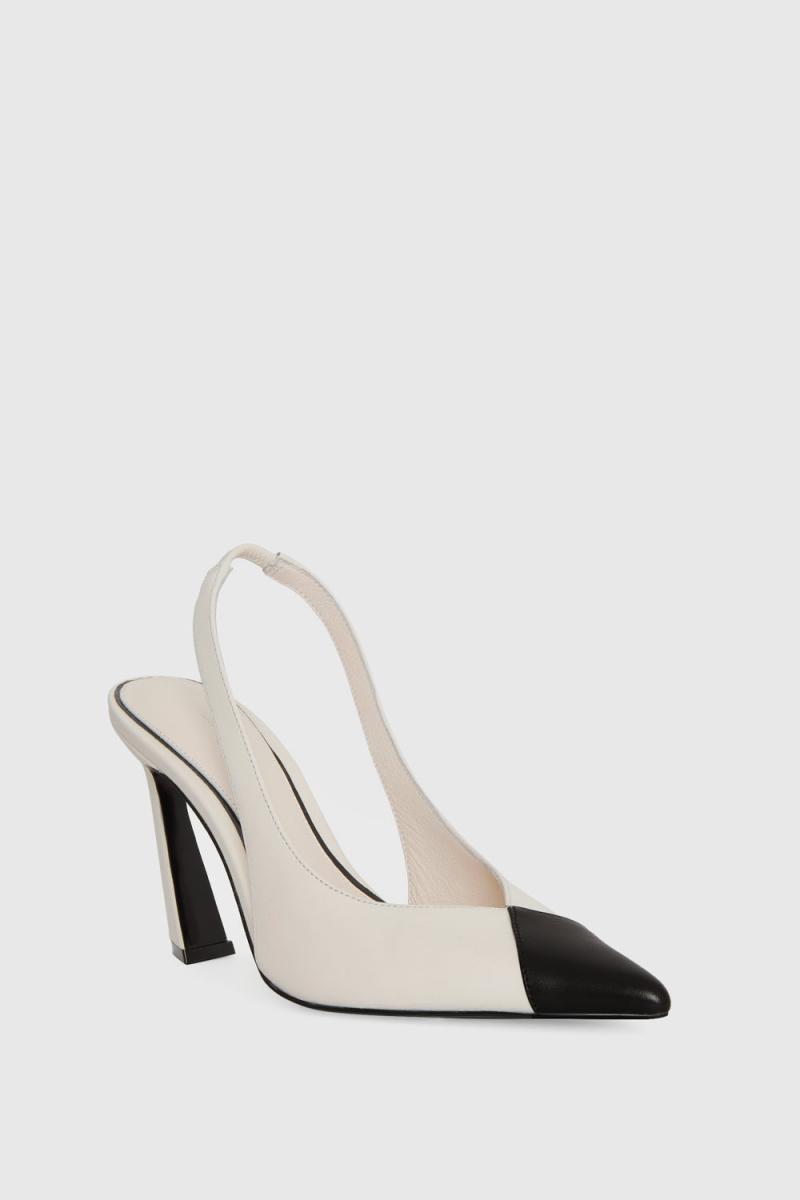 Make a statement in the MILEY SLINGBACK, where elegance meets edge. With a pointed toe and sculpted heel, this sleek slingback is finished with a cap toe and elastic-backed strap for a secure, stylish fit. Comfort meets chic with a padded insole and non-slip sole insert. Style # MILEYSLGBK01-Black/Panna